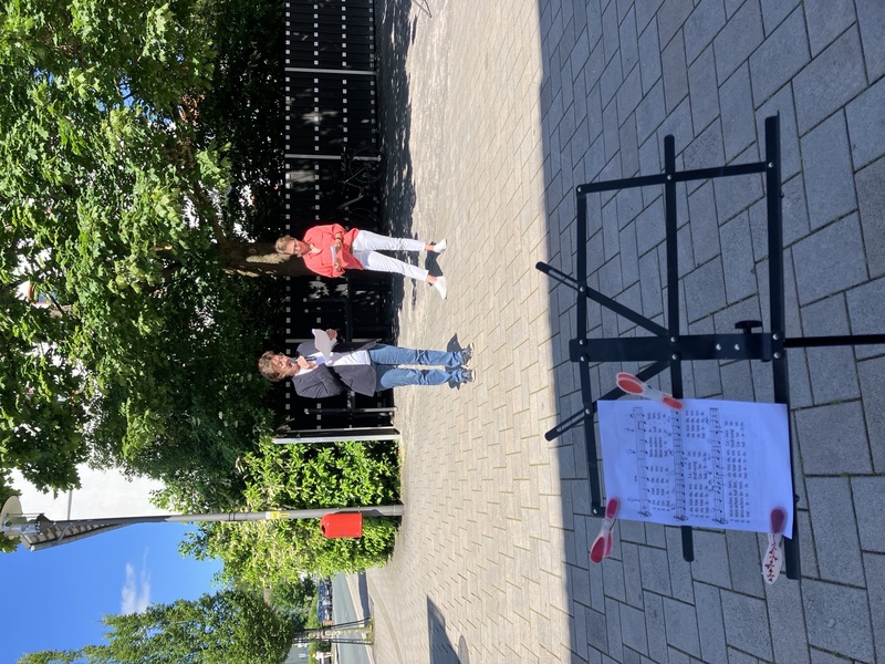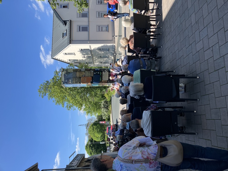Fast 50 Teilnehmende kamen bei bestem Wetter zusammen. Dieses Mal war es ein Ort, der durch ankommende und abfahrende Zugreisende durchquert wurde. Deshalb war der Gottesdienst eher durch Impulse geprägt.