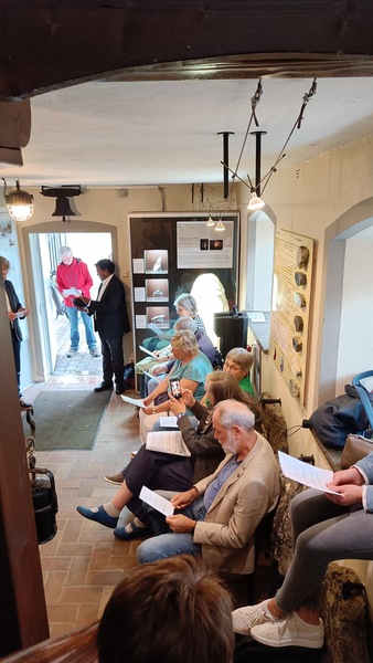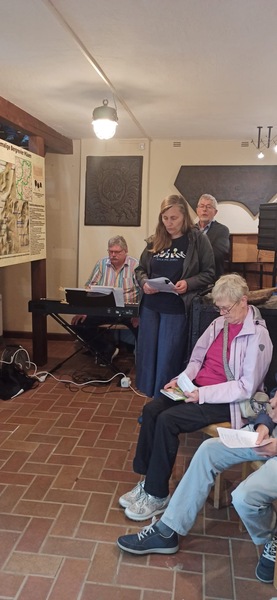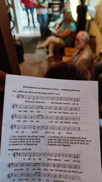 Knapp 30 Personen waren am 6. Juli 2025 zum Gottesdienst am besonderen Ort in den Vorraum des Stahlberg-Museums in Müsen gekommen. Geplant war der Gottesdienst eigentlich vor dem Grubeneingang, aber der Regen von oben machte einen Strich durch den Plan.