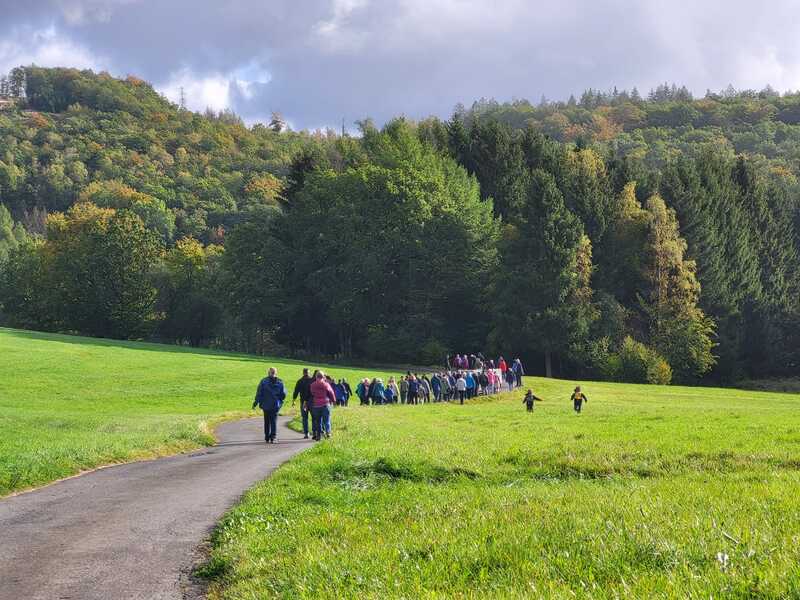 Am Samstag, 14. Oktober 2023, war es nach zwei arbeitsintensiven Jahren endlich so weit: Mit einem ökumenischen Gottesdienst an der ersten von insgesamt zwölf Stationen über das Leben Jesu wurde der außergewöhnliche und einmalige Glaubensweg mitten im Müsener Hauberg eröffnet.