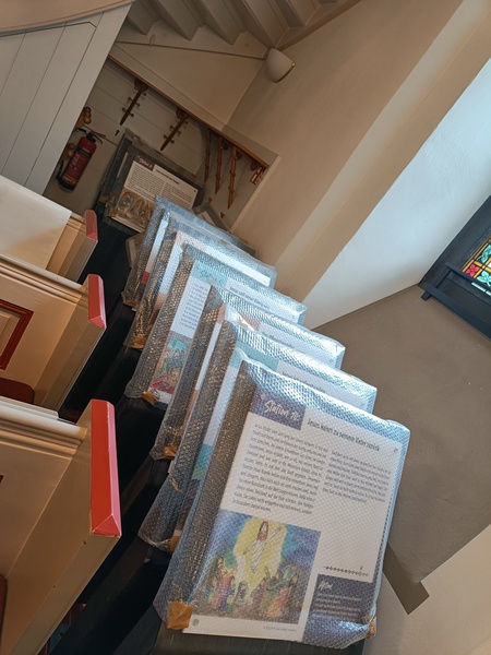 Mit großer Freude konnten endlich die 12 bunten und lang erwarteten Schautafeln für die Stationen des JesusWEGs in Empfang genommen und in der ev. Kirche Müsen zwischengelagert werden.