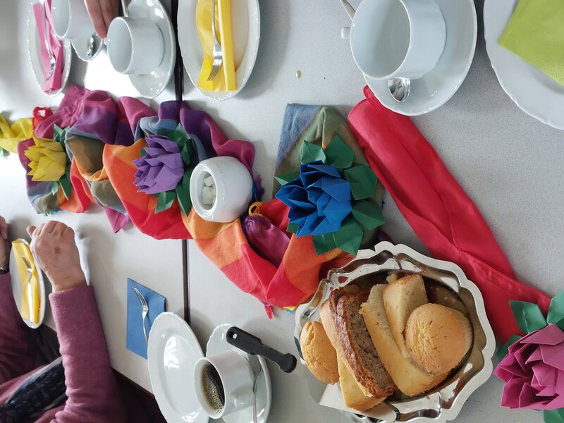 In der Andacht zu Psalm 139 stellte Christa Wagner besonders heraus, wie alles, besonders auch wir wunderbar geschaffen sind. Das kam auch in den Liedern aus der Gottesdienstordnung zum Ausdruck. Beim leckeren Kaffeetrinken mit Kuchen nach Rezepten von den Cookinseln fand ein gemütlicher Nachmittag an hübsch gedeckten Tischen mit regem Austausch statt. Die Deko gefiel allen gut und veranschaulichte die bunte Vielfalt, die das Leben auf den Cookinseln widerspiegelte.