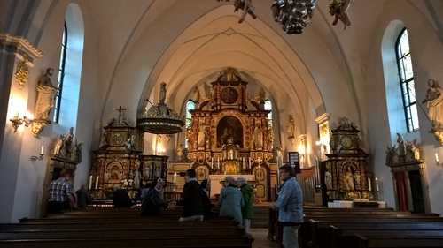 Nach ausgiebigem Schmausen und Erzählen gingen wir gemeinsam in die Wallfahrtskapelle. Hier brachten wir unsere eigenen Bitten, wie auch die von anderen Pilgern, im Rosenkranzgebet zu Maria und wohnten anschließend dem Feiertagsgottesdienst bei, der auch von vielen aus dem Umkreis besucht wurde.
