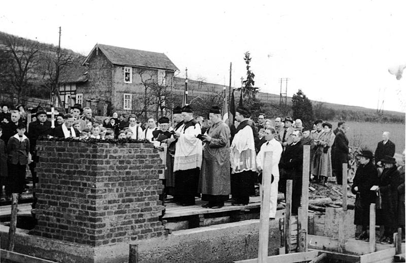 Die Katholische Gemeinde Krombach entstand 1936. Die 300 Gemeindemitglieder aus Stendenbach, Bockenbach, Eichen, Krombach, Littfeld und Burgholdinghausen wurden anfangs von Aloys Deppe betreut. Da man noch keine eigene Kirche hatte, feierte man die Gottesdienste in Holzbaracken, Schuppen und dem Martin-Luther-Haus der evangelischen Gemeinde vor Ort. Für ein eigenes Gotteshaus erwarb Deppe bereits 1937 das Grundstück, auf dem die Kirche heute steht.