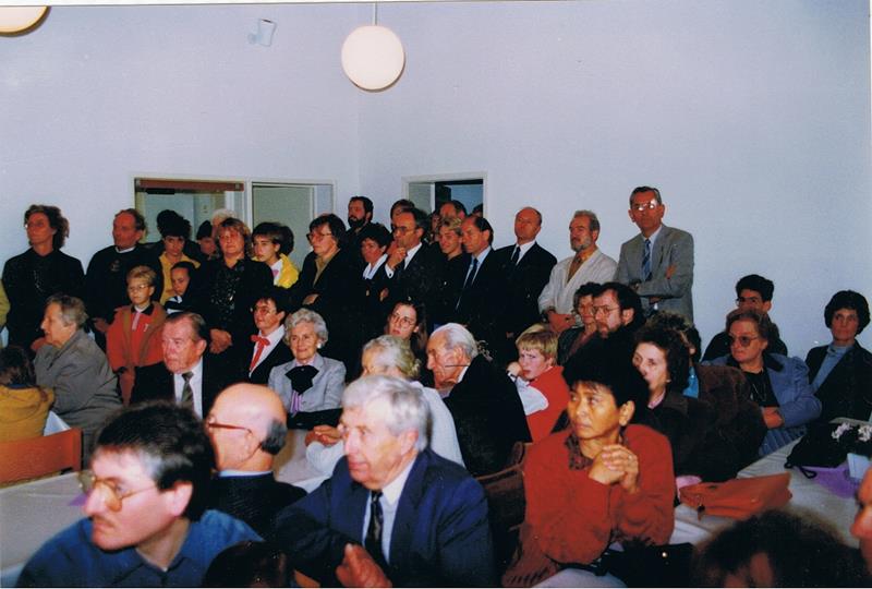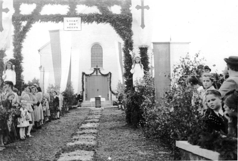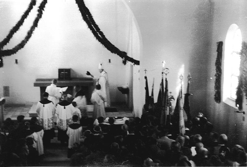 Zum ersten Gottesdienst am 6. Juni 1943 waren 230 Personen versammelt, so dass der Großteil der Gläubigen im strömenden Regen vor den Türen am Gottesdienst teilnehmen musste.