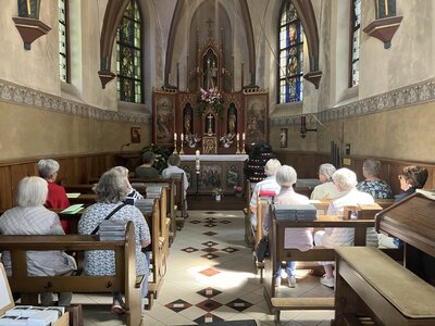Am 15. Juni fuhren einige Frauen aus unserer Gemeinde Dahlbruch und Herzhausen in Fahrgemeinschaften zur Wallfahrtskapelle „Zur Dörnschlade“. Dort fand eine kleine Andacht, von Angelika Helsper vorbereitet, „Zum Sommerbeginn – unter dem Titel: Geh aus mein Herz und suche Freud – nach dem bekannten Lied von Paul Gerhardt“, statt.