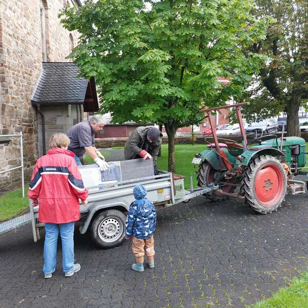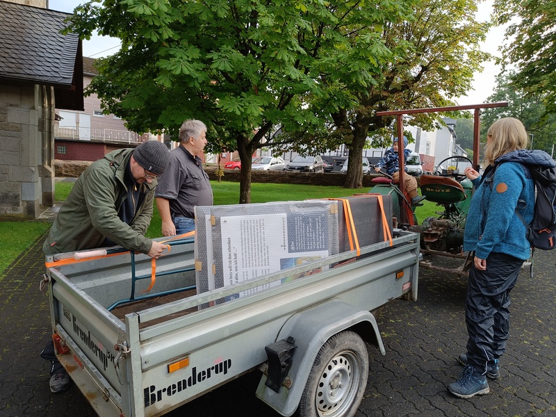 Mit großer Freude konnten endlich die 12 bunten und lang erwarteten Schautafeln für die Stationen des JesusWEGs in Empfang genommen und in der ev. Kirche Müsen zwischengelagert werden.