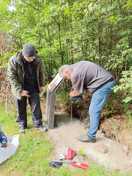 Am nächsten Tag sollte es dann mit drei weiteren Schautafel und dem mittlerweile eingespielten Team weitergehen, aber leider machte den motivierten JesusWEGlern das schlechte Wetter einen Strich durch die Rechnung: Es regnete so stark, dass das Team nach zwei aufgestellten Stelen entnervt und triefend nass aufgab.