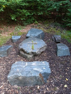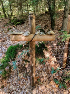 Beim letzten Abendmahl haben Besucher ein Kreuz auf die Steintafel gelegt. Foto: Christina Weber