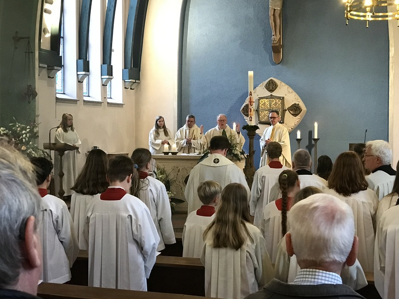 Zur Festmesse, die von Pfarrer Rüsche und einigen seiner priesterlichen Weggefährten zelebriert und von einer großen Schar Messdiener/innen aus allen drei Pastoralverbundsgemeinden begleiet wurde, waren so viele Gemeindemitglieder und Gäste gekommen, dass die Johanneskirche bis auf den letzten Sitz- und Stehplatz besetzt war.