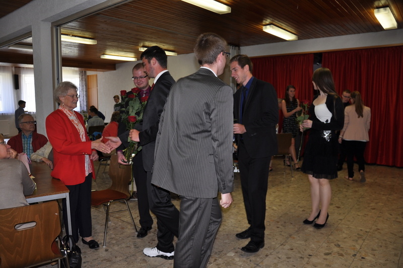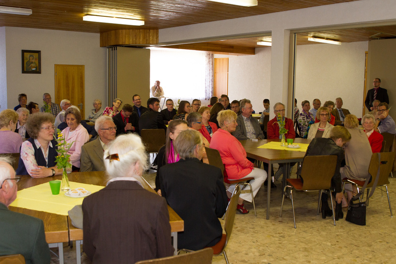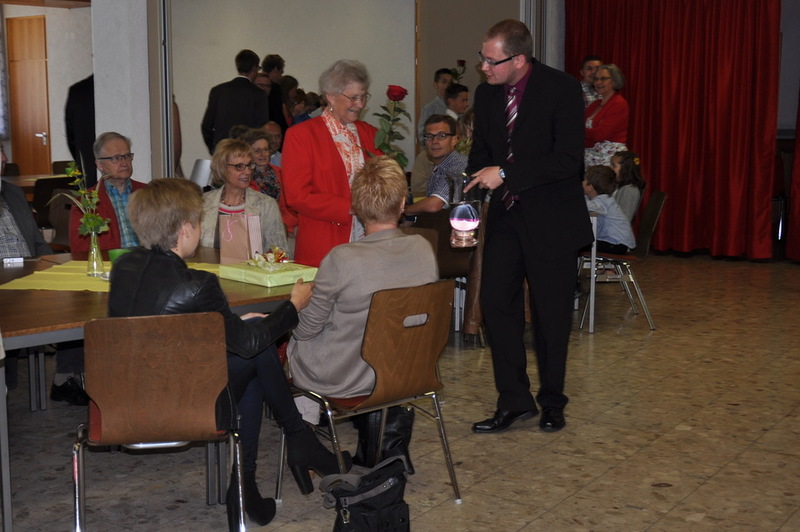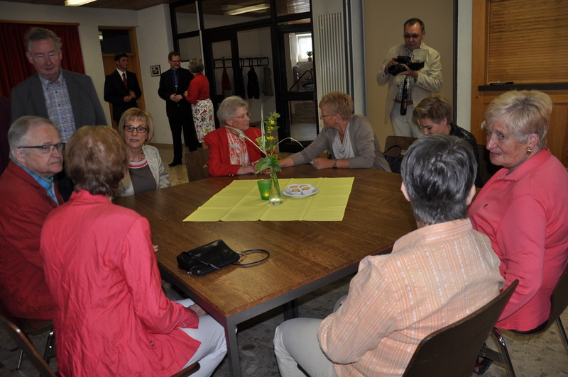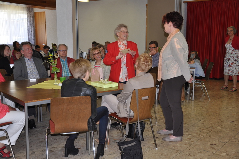 Nach dem Festhochamt war die Gemeinde zu einer Verabschiedungsfeier ins Gemeindezentrum St. Vitus eingeladen. Hier bedankten sich im Namen der Pfarrgemeinde Pfarrgemeinderatsvorsitzende Annelie Wirke und die stellvertretende Kirchenvorstandsvorsitzende Angelika Höchst mit jeweils einem Abschiedsgeschenk für Frau Bergs Mitwirkung als Küsterin. Beide betonten in ihren Ansprachen, dass Frau Berg zwar aus dem Küsterdienst verabschiedet werde, aber der Gemeinde weiterhin und hoffentlich noch viele Jahre erhalten bleibe. Auch viele Gemeindemitglieder nutzten die Gelegenheit, Frau Berg noch einmal persönlich zu danken.