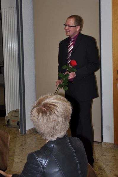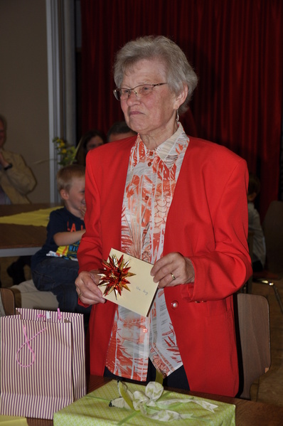 Zum Schluss der Messe hatte Frau Berg Gelegenheit, selbst das Wort zu ergreifen. Sie brachte zum Ausdruck, wie wichtig ihr die Tätigkeit in Kirche und Sakristei war: „23 Jahre war ich Küsterin in Hilchenbach und möchte keinen Tag davon missen.“ Alle anfallenden Arbeiten habe sie gern erledigt und auch wenn sie schon mal anderer Meinung war als die Geistlichen, so sei es doch ein herzliches Miteinander gewesen. Einen besonderen Dank richtete Frau Berg an ihren Ehemann, der sie stets bei der Pflege der Außenanlagen um Kirche und Gemeindezentrum unterstützt habe und der sich nie beschwert habe, wenn sie in Sachen „Kirche“ nicht selten 8 – 10 Stunden am Tag unterwegs war.