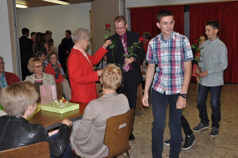 Ein besonderes Anliegen war Frau Berg die Messdienerarbeit. Zahlreiche Generationen von Messdienern hat die beherzte Küsterin auf den würdigen Dienst am Altar vorbereitet und darüber hinaus bei den jährlichen Messdienerausflügen begleitet und bei Gruppenstunden und Adventsfeiern mit Kakao und Selbstgebackenem versorgt. Die Messdiener ihrerseits dankten ihr die entgegengebrachte Fürsorge mit selbstverständlicher Hilfsbereitschaft bei allen Arbeiten, bei denen Frau Berg Unterstützung brauchte: Rasen mähen im Sommer, Schnee schieben im Winter sowie allerlei vorbereitende Tätigkeiten für kirchliche Feste im Jahreskreis und Großveranstaltungen. Bei der Verabschiedung „ihrer“ Küsterin waren – zur großen Freude von Frau Berg – neben der aktiven Messdienerschar auch viele Ehemalige noch einmal um den Altar versammelt.