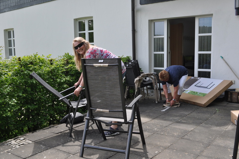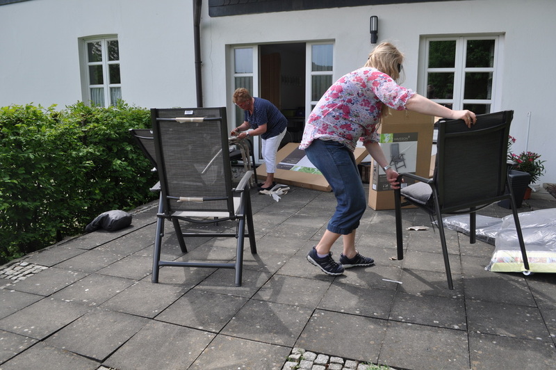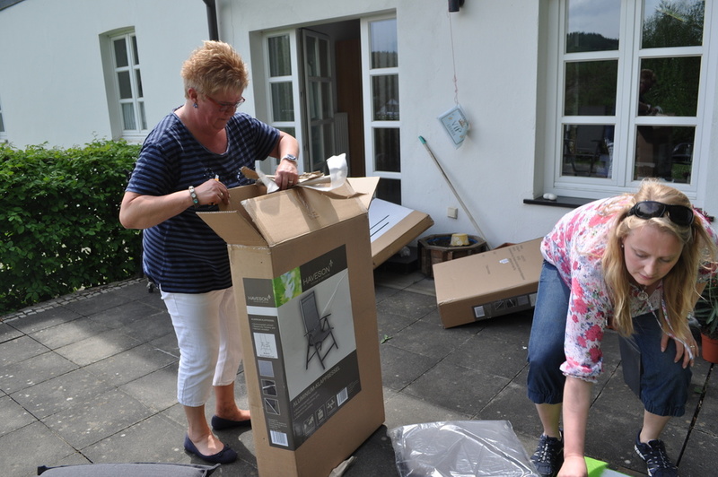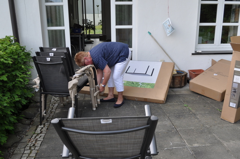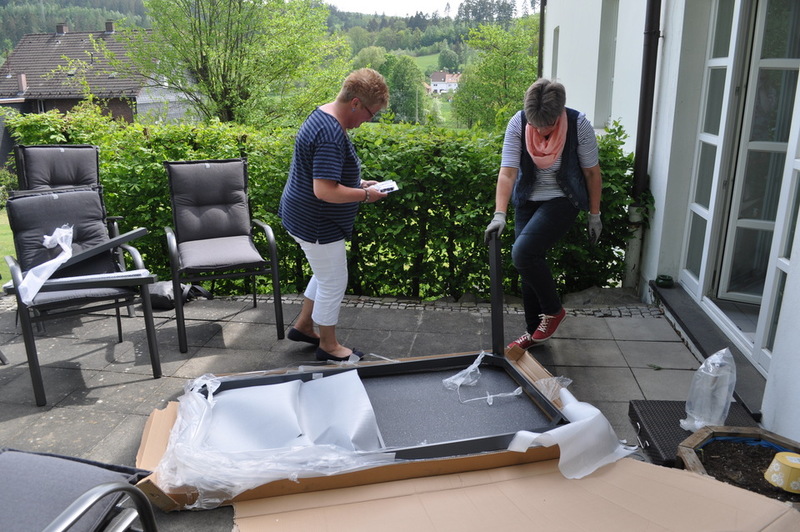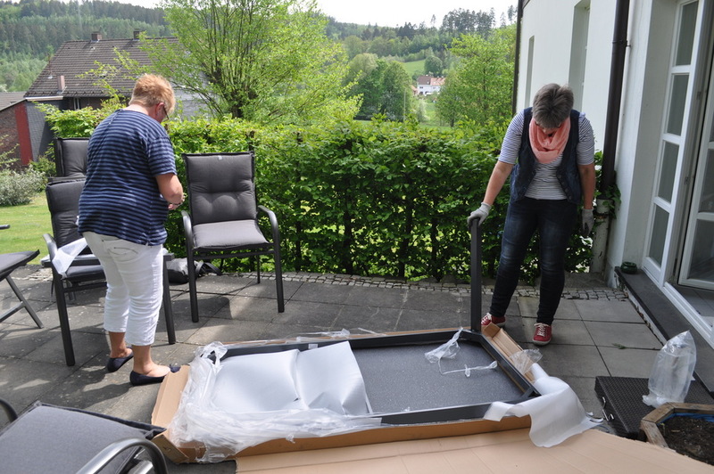 Nachdem etwas Passendes gefunden war, wurde es bestellt und für den Donnerstag vor Pfingsten zum Abholen reserviert. Der Plan war, die neue Sitzgruppe in der Mittagspause von Pastor Rüsche „mal eben“ schnell abzuholen und aufzubauen, so dass das Überraschungsgeschenk am Jubiläumstag bereits zur Benutzung zur Verfügung stehen konnte. Bis dahin sollte absolutes Stillschweigen bewahrt werden …
