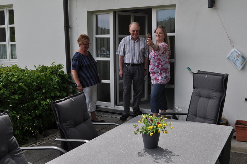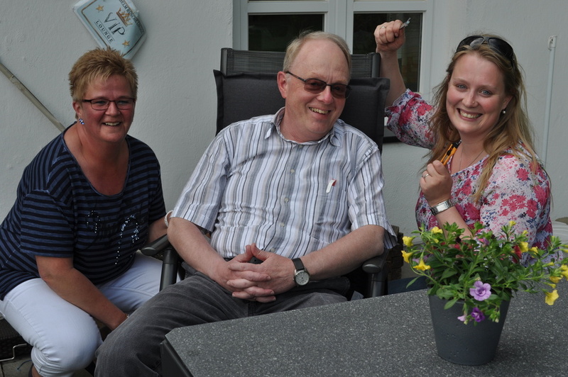 Zunächst sprachlos und überrascht und dann sichtlich erfreut über das neue angenehme Ambiente auf seiner Terrasse nahm er zu einer ersten Sitzprobe Platz. Die Gemütlichkeit währte allerdings nicht lange und die eigentlich noch geplante Sekttaufe musste ausfallen, denn auf Pastor Rüsche und Gemeindereferentin Christina Schreiber warteten schon die nächsten Termine im Pastoralverbund.