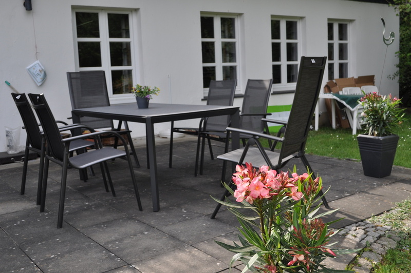 In die Jahre gekommen waren sie: die weißen Kunststoffmöbel auf Pastors Terrasse. Tisch und Stühle waren durch Wind und Wetter schon lange nicht mehr ganz taufrisch und blendend weiß und die einstmals fröhlich kräftigbunten Auflagen kamen mittlerweile recht sonnengebleicht und reichlich blass daher.