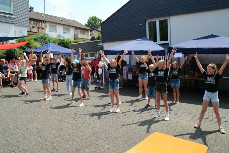 Am Nachmittag zeigte die St. Martin Schule einige Ausschnitte aus ihrer Musical-AG. Danach eröffnete die Spielstraße für die kleinen Besucherinnen und Besucher. Dazu zählten zum Beispiel Aktionen wie das Enten-Angeln, Karussell fahren oder Dosen mit einer Wasserpistole abschießen. Für die anderen Gäste gab es im Johannesheim eine Kaffee- und Kuchenbar.
