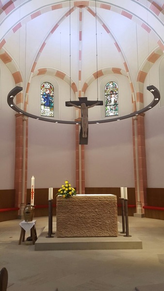 Jahrelang schon war die Pfarrgemeinde im Hochsauerland auf der Suche nach einem geeigneten Altarkreuz für ihre Kirche. Durch die Vermittlung von Gemeindereferentin Christina Schreiber konnte der leere Platz über dem Altar nun angemessen ausgestattet werden.