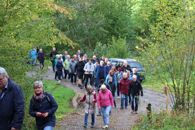 Zahlreiche Teilnehmer/innen waren zur offiziellen Eröffnung des JesusWEGs in den Müsener Hauberg gekommen. Foto: Katharina Weber