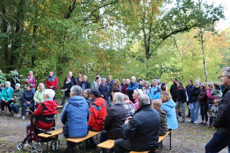 Am Samstag, 14. Oktober 2023, war es nach zwei arbeitsintensiven Jahren endlich so weit: Mit einem ökumenischen Gottesdienst an der ersten von insgesamt zwölf Stationen über das Leben Jesu wurde der außergewöhnliche und einmalige Glaubensweg mitten im Müsener Hauberg eröffnet.