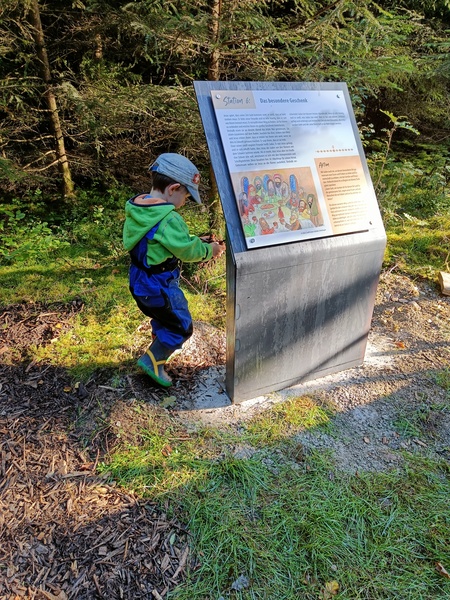 Andreas Weber und David Schreiber brachten das Metallteil mit vereinten Kräften in den Wald und wurden dabei tatkräftig von dem jüngsten Teammitglied Noah Schreiber unterstützt.
