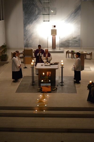 Die anwesende Gemeinde konnte das Thema nicht nur anhand der Bibeltexte, der liturgischen Betrachtung und der Meditation nachvollziehen, sondern auch ein entsprechend gestalteter Altarraum und Liedern transportierte das Thema zu den Anwesenden. So stand eine Jesusikone auf einer Himmelsleiter symbolisch dafür, wie Jesus sich den Weg zu den Menschen bahnt. Von der Himmelsleiter führte ein Weg aus Kerzen und Hindernissen (Steinen) hinaus aus der durch eine bildhaft dargestellte Wüste zu den, in die Bänke sitzenden, Gottesdienstbesuchern. Um die Ankunft des Herrn für die Anwesenden zu verdeutlichen, wurden Meditationsimpulse vorgetragen und Kerzen angezündet, sodass ein leuchtender Weg zu den Besuchern hin entstand. Alle wurden dadurch eingeladen, selbst darüber nachzudenken, wie sie nicht nur in der Adventszeit dem Herrn den Weg bereiten können.