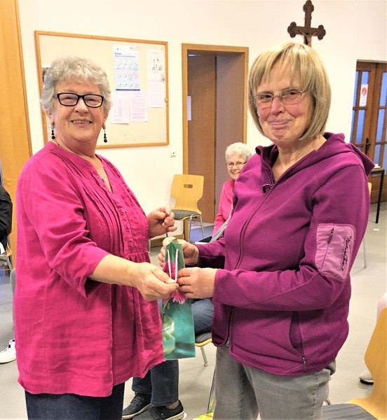 Auch sie alle bekamen ein kleines Geschenk von der Teamsprecherin überreicht. Danach wurden der Jahresbericht, der Kassen- und Kassenprüfungsbericht verlesen und die Teamsprecherin bedankte sich anschließend bei allen für die geleistete Arbeit in den vergangenen Monaten. Die Möglichkeiten von gemeinsamen Veranstaltungen im 2. Halbjahr 2021 wurden ebenfalls besprochen, wie das traditionelle Rosenkranzgebet in der Wallfahrtskirche Kohlhagen im August, das jährliche ökumenische Frühstück im September, eine Wanderung mit „süßer Einkehr“ im Oktober, die Elisabethfeier in Hilchenbach im November und die ganz gewiss stattfindende Rorate-Feier im Dezember.