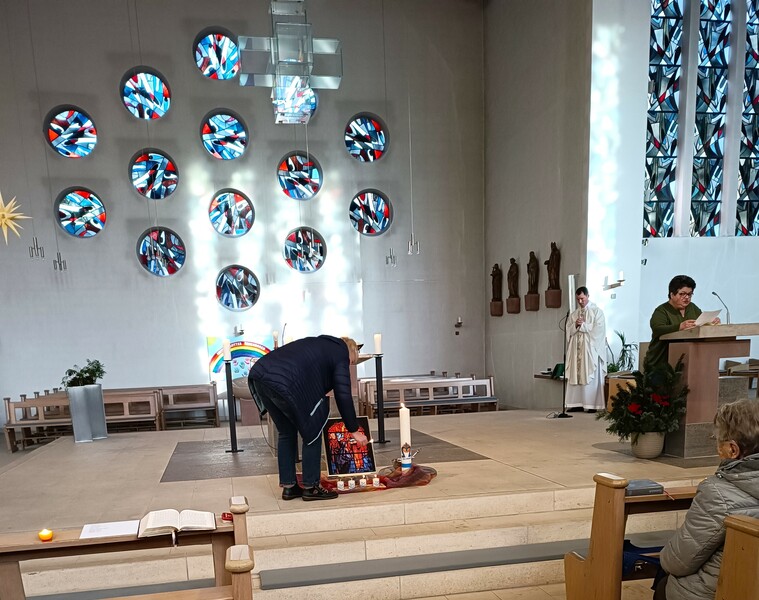 Am 01.02.2024 trafen sich die Frauen unserer Pfarrgemeinde zur Hl. Messe mit Herrn Pastor Hellekes , um das Fest Maria Lichtmess (2.2.) zu feiern und die neue Marienkerze segnen zu lassen. Es wurde in der Betrachtung von Angelika Helsper zu den Lesungen vom Fest „Darstellung des Herrn im Tempel“ von dem erhofften Frieden von Hanna und Simeon bis hin auf den ersehnten Frieden im heutigen Palästina eingegangen.