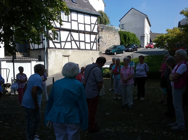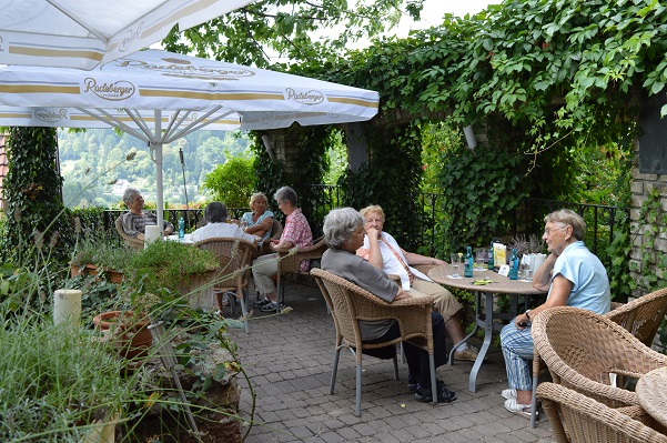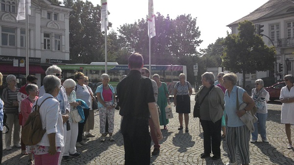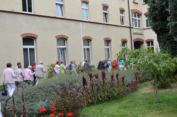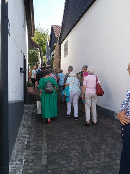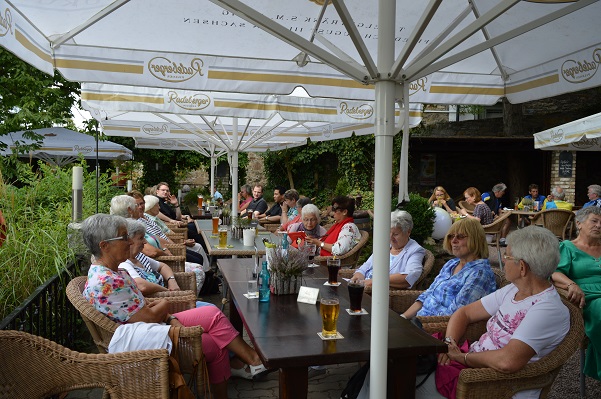Nach der Andacht erreichten man, mit etwas Verspätung, die Gaststätte „Altes Backhaus“. Hier hatte die Bedienung im Biergarten, unter großen Bäumen und Sonnenschirmen, die Tische gedeckt und die Frauen und vier Männer nicht nur mit Kaltgetränken ausreichend versorgt, sondern auch mit leckerem Essen. Um halb vier am Nachmittag verließen alle diese Oase in der Stadt und der Busfahrer fuhr alle nach Werl.