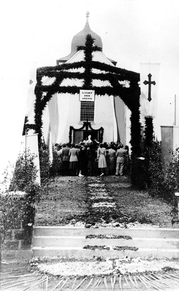 Zum ersten Gottesdienst am 6. Juni 1943 waren 230 Personen versammelt, so dass der Großteil der Gläubigen im strömenden Regen vor den Türen am Gottesdienst teilnehmen musste.